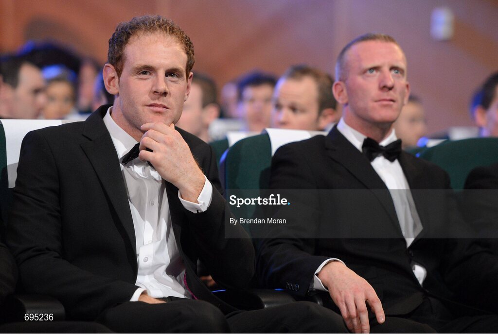 26 October 2012; Waterford's Kevin Moran, left, and John Mullane at the 2012 GAA GPA All-Star awards, sponsored by Opel. GAA GPA All-Star Awards 2012 Sponsored by Opel, National Convention Centre, Dublin. Picture credit: Brendan Moran / SPORTSFILE