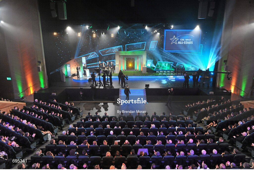 26 October 2012; Galway's Fergal Moore makes his way up to the stage to receive his award at the 2012 GAA GPA All-Star awards, sponsored by Opel. GAA GPA All-Star Awards 2012 Sponsored by Opel, National Convention Centre, Dublin. Picture credit: Brendan Moran / SPORTSFILE