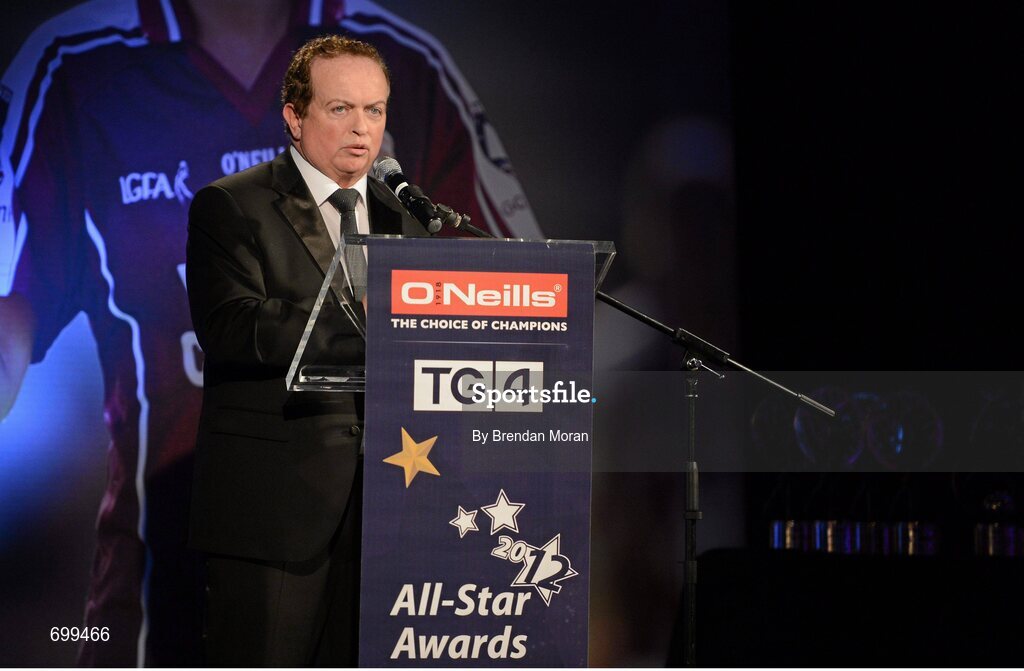 10 November 2012; MC Marty Morrissey speaking during the TG4 O'Neill's Ladies Football Allstar awards. TG4 O'Neill's Ladies Football All-Star Awards 2012, Citywest Hotel, Saggart, Co. Dublin. Picture credit: Brendan Moran / SPORTSFILE
