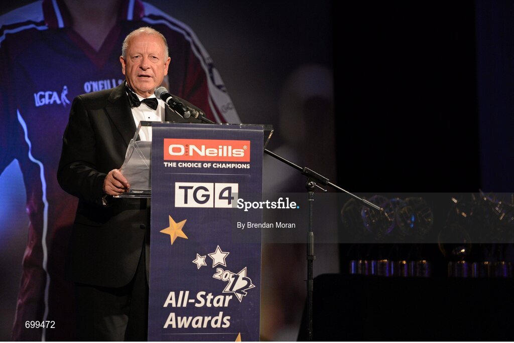 10 November 2012; Pat Quill, President, Ladies Gaelic Football Association speaking during the TG4 O'Neill's Ladies Football Allstar awards. TG4 O'Neill's Ladies Football All-Star Awards 2012, Citywest Hotel, Saggart, Co. Dublin. Picture credit: Brendan Moran / SPORTSFILE