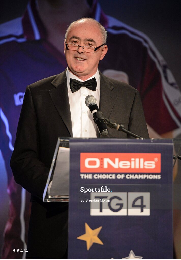 10 November 2012; Liam Moggan, National Coach Development Officer, Coaching Ireland, speaking during the TG4 O'Neill's Ladies Football Allstar awards. TG4 O'Neill's Ladies Football All-Star Awards 2012, Citywest Hotel, Saggart, Co. Dublin. Picture credit: Brendan Moran / SPORTSFILE