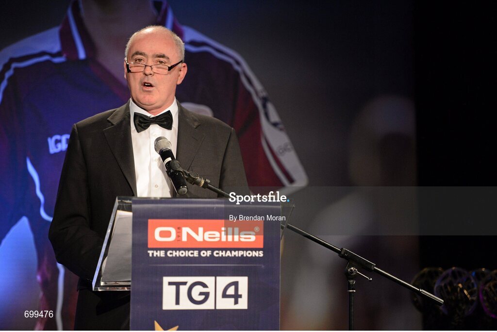 10 November 2012; Liam Moggan, National Coach Development Officer, Coaching Ireland, speaking during the TG4 O'Neill's Ladies Football Allstar awards. TG4 O'Neill's Ladies Football All-Star Awards 2012, Citywest Hotel, Saggart, Co. Dublin. Picture credit: Brendan Moran / SPORTSFILE