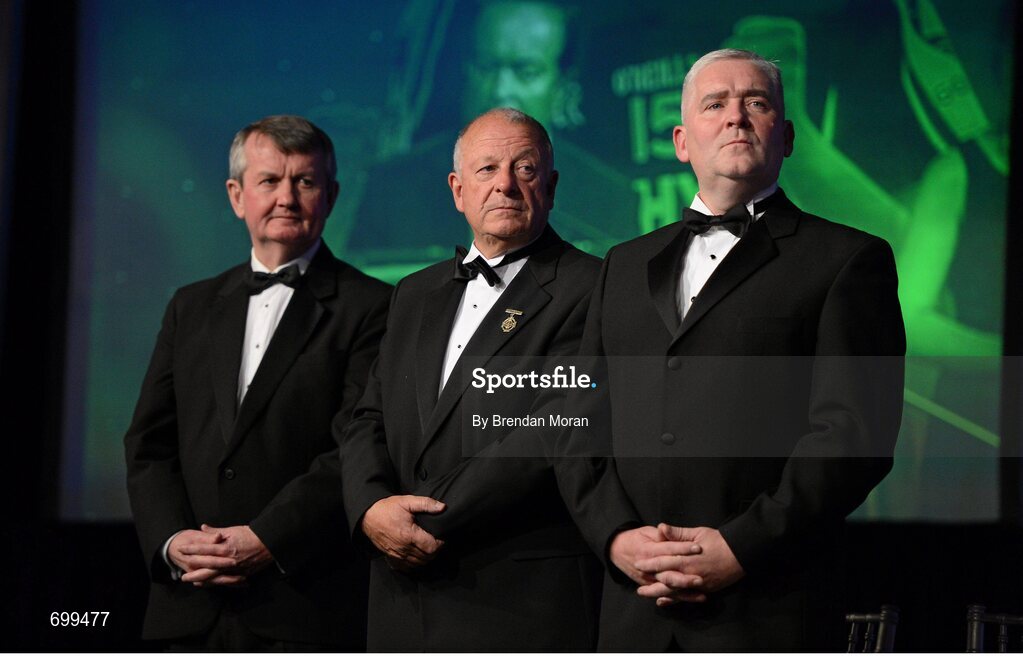 10 November 2012; In attendance at the TG4 O'neill's All-Star awards, from left, Pol O Gallchoir, Ceannsaí, TG4, Pat Quill, President, Ladies Gaelic Football Association, and Cormac Farrell, O'Neill's. TG4 O'Neill's Ladies Football All-Star Awards 2012, Citywest Hotel, Saggart, Co. Dublin. Picture credit: Brendan Moran / SPORTSFILE
