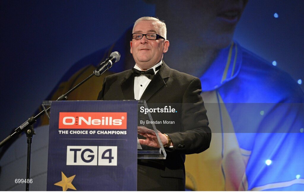 10 November 2012; Cormac Farrell, O'Neill's, speaking during the TG4 O'Neill's Ladies Football Allstar awards. TG4 O'Neill's Ladies Football All-Star Awards 2012, Citywest Hotel, Saggart, Co. Dublin. Picture credit: Brendan Moran / SPORTSFILE