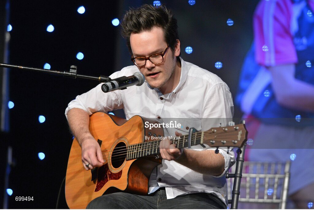 10 November 2012; Singer Tim Hennessy performing during the TG4 O'Neill's Ladies Football Allstar awards. TG4 O'Neill's Ladies Football All-Star Awards 2012, Citywest Hotel, Saggart, Co. Dublin. Picture credit: Brendan Moran / SPORTSFILE