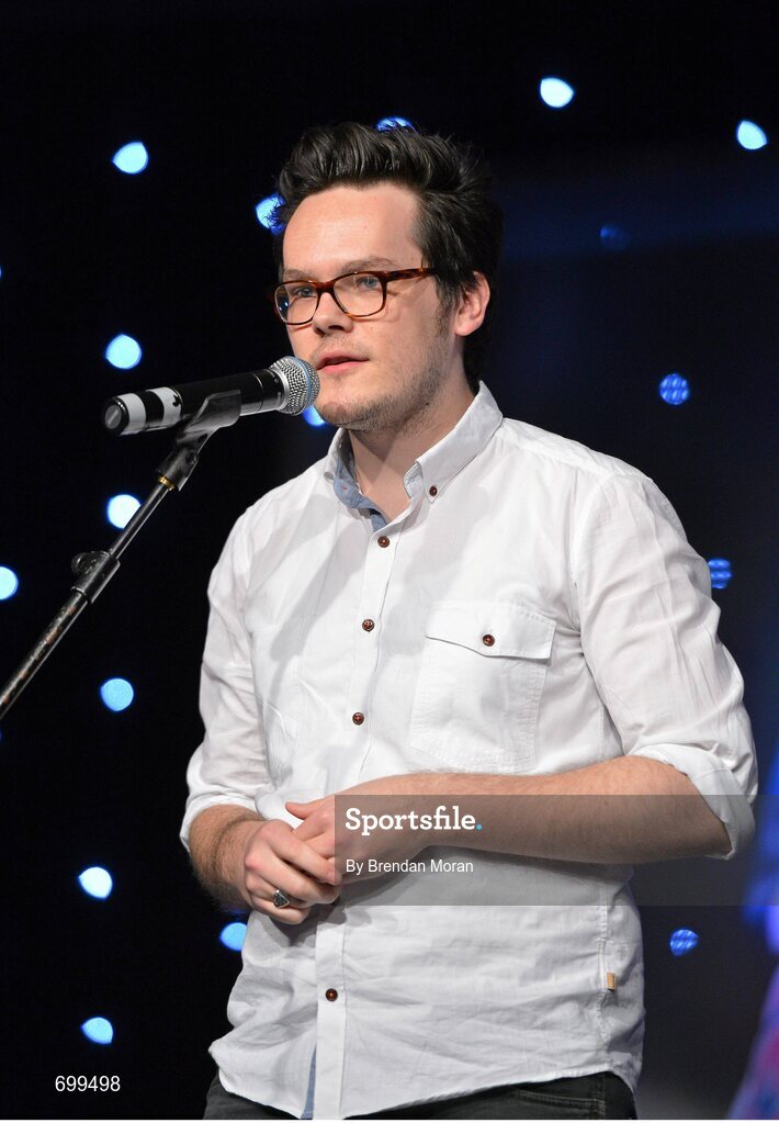10 November 2012; Singer Tim Hennessy performing during the TG4 O'Neill's Ladies Football Allstar awards. TG4 O'Neill's Ladies Football All-Star Awards 2012, Citywest Hotel, Saggart, Co. Dublin. Picture credit: Brendan Moran / SPORTSFILE