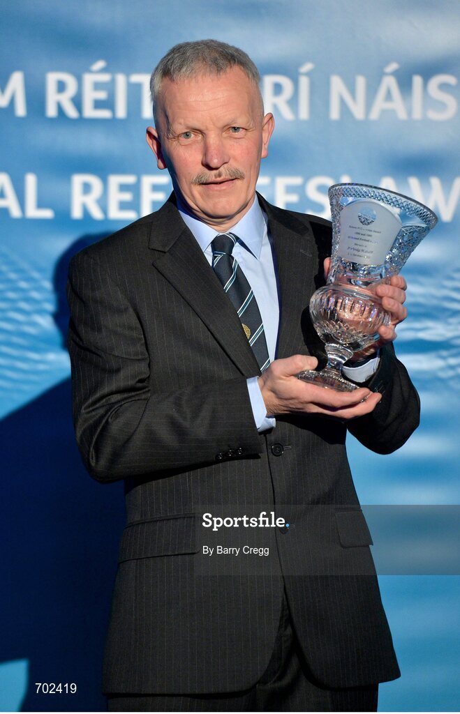 24 November 2012; Referee Paddy Russell, from Tipperary, is presented with his Hall of Fame Award. 2012 National Referees' Awards Banquet, Croke Park, Dublin. Picture credit: Barry Cregg / SPORTSFILE
