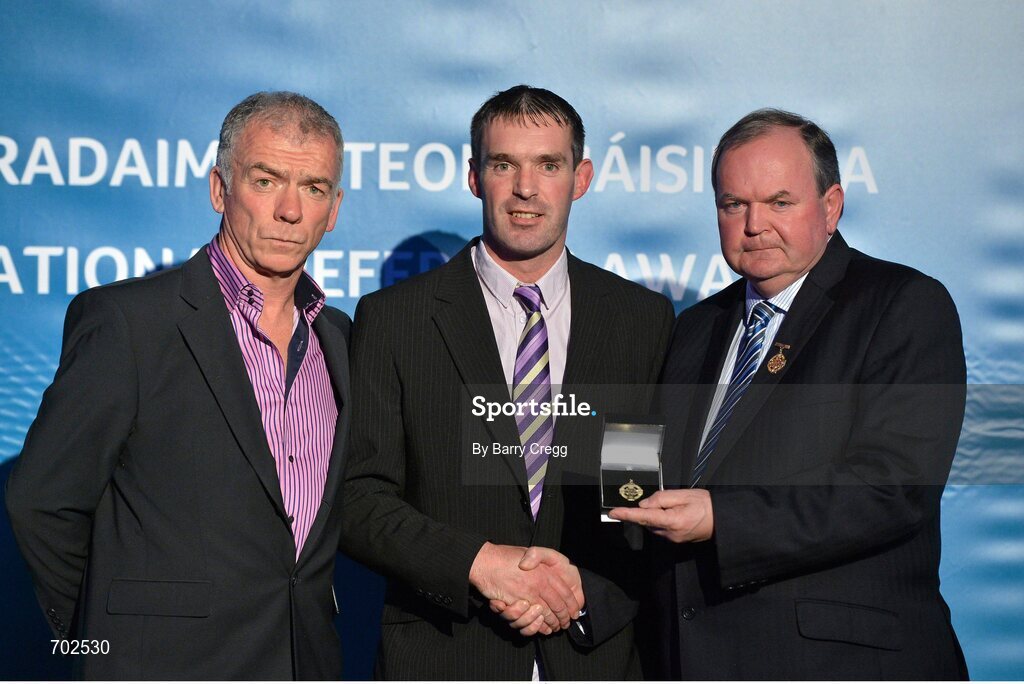 24 November 2012; Referee James Owens, from Wexford, is presented with his All-Ireland Intermediate Hurling Chamionship referees' medal by Uachtarán Chumann Lúthchleas Gael Liam Ó Néill, right, and Chairman of the National Referees Committee, Pat McEnaney. 2012 National Referees' Awards Banquet, Croke Park, Dublin. Picture credit: Barry Cregg / SPORTSFILE