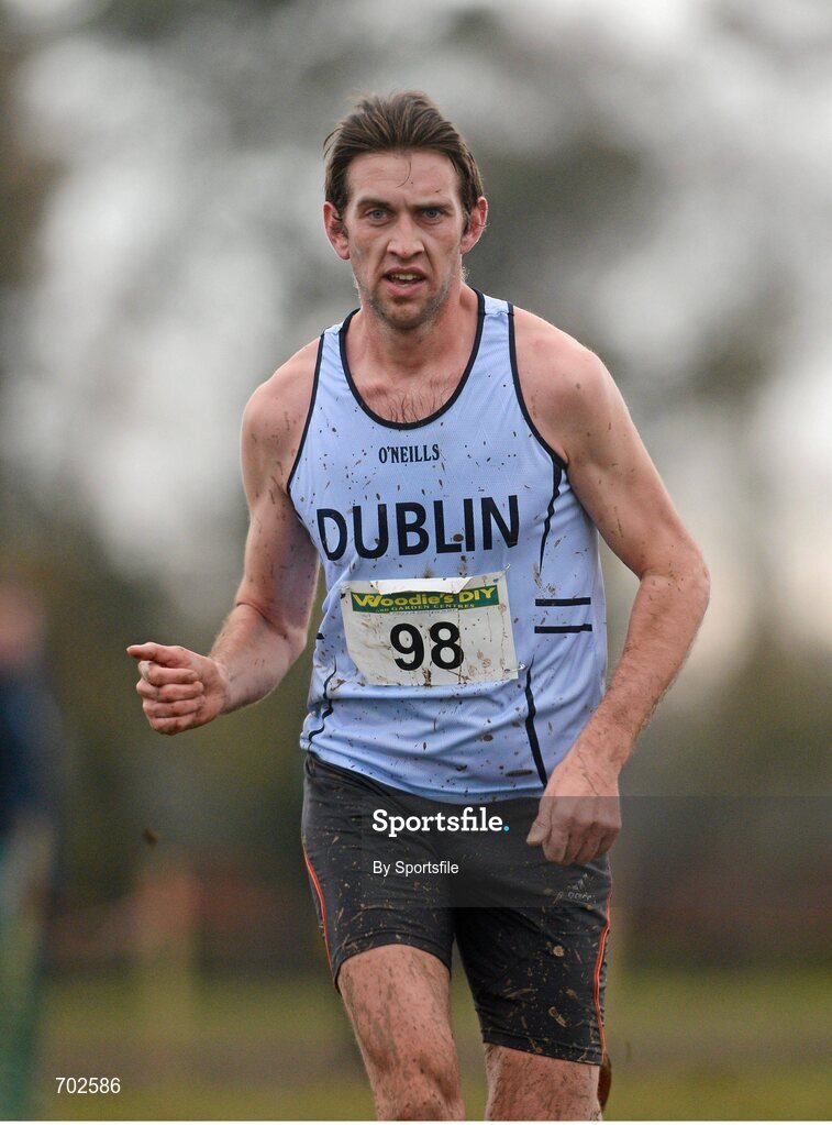 25 November 2012; Joseph Sweeney, Dublin, on his way to winning the Senior Men's 10,000m at the Woodie's DIY Juvenile and Inter County Cross Country Championships. Tattersalls, Ratoath, Co. Meath. Photo by Sportsfile