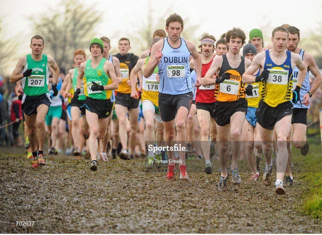 25 November 2012; A general view during the start of the Senior Mens 10,000m race with eventual winner Joe Sweeney, Dublin, centre. Woodie's DIY Juvenile and Inter County Cross Country Championships. Tattersalls, Ratoath, Co. Meath. Picture credit: Tomas Greally / SPORTSFILE