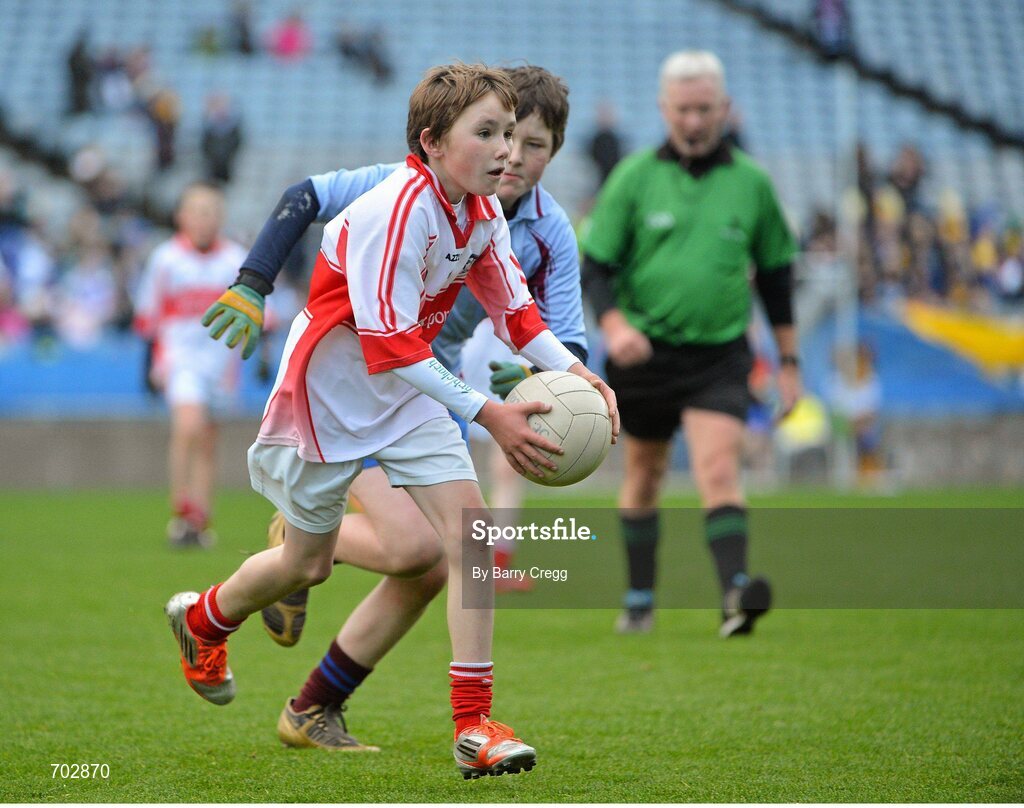 26 November 2012; Evan Walshe, Scoil Lorcáin Baile Pámair, in action against Conaill Tiúit, Scoil Mobhi Glasanaíon. Allianz Cumann na mBunscol Finals, Scoil Lorcáin Baile Pámair v Scoil Mobhi Glasanaíon, Croke Park, Dublin. Picture credit: Barry Cregg / SPORTSFILE