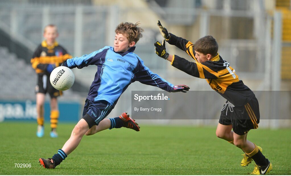 26 November 2012; Max Colgan, Scoil Attracta SNS Ballinteer, in action against Joseph Kendrick, St Mark’s Springfield. Allianz Cumann na mBunscol Finals, St Mark’s Springfield v Scoil Attracta SNS Ballinteer, Croke Park, Dublin. Picture credit: Barry Cregg / SPORTSFILE