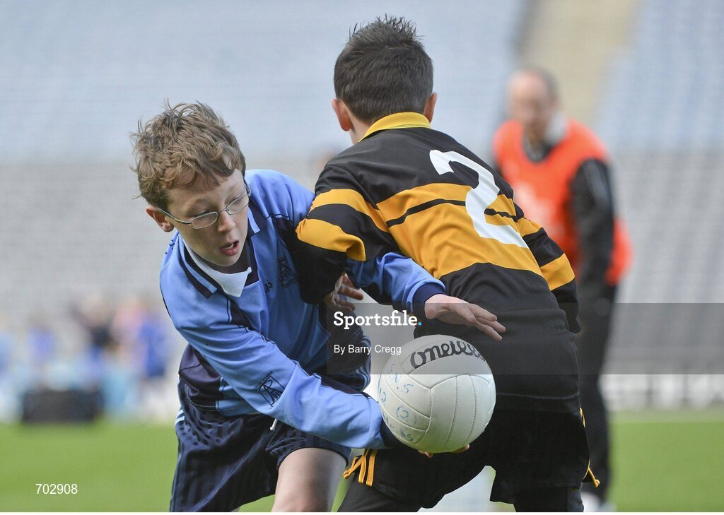 26 November 2012; Cormac Gaffney, Scoil Attracta SNS Ballinteer, in action against Jack Kielthy, St Mark’s Springfield. Allianz Cumann na mBunscol Finals, St Mark’s Springfield v Scoil Attracta SNS Ballinteer, Croke Park, Dublin. Picture credit: Barry Cregg / SPORTSFILE