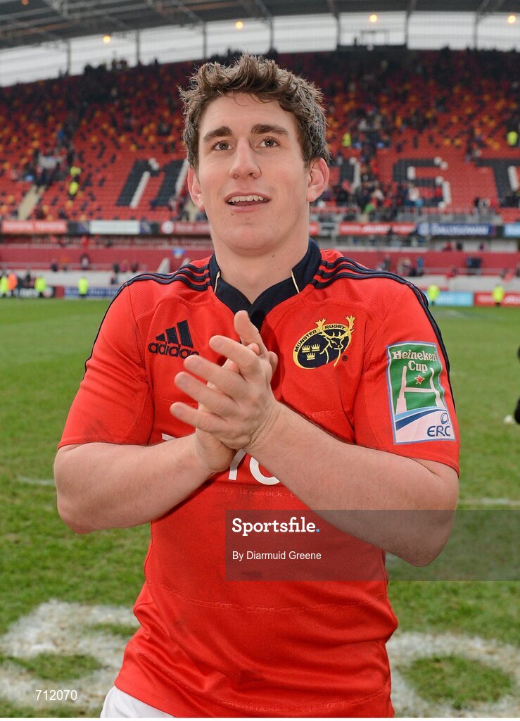 20 January 2013; Munster's Ian Keatley applauds the supporters after the game. Heineken Cup, Pool 1, Round 6, Munster v Racing Metro 92, Thomond Park, Limerick. Picture credit: Diarmuid Greene / SPORTSFILE
