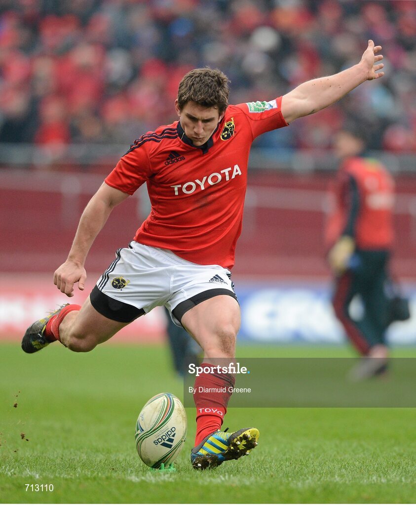 20 January 2013; Ian Keatley, Munster, kicks a conversion. Heineken Cup, Pool 1, Round 6, Munster v Racing Metro 92, Thomond Park, Limerick. Picture credit: Diarmuid Greene / SPORTSFILE