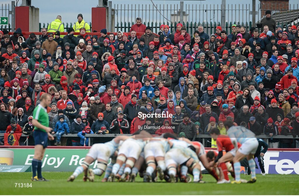 20 January 2013; Munster supporters look on at a scrum during the game. Heineken Cup, Pool 1, Round 6, Munster v Racing Metro 92, Thomond Park, Limerick. Picture credit: Diarmuid Greene / SPORTSFILE