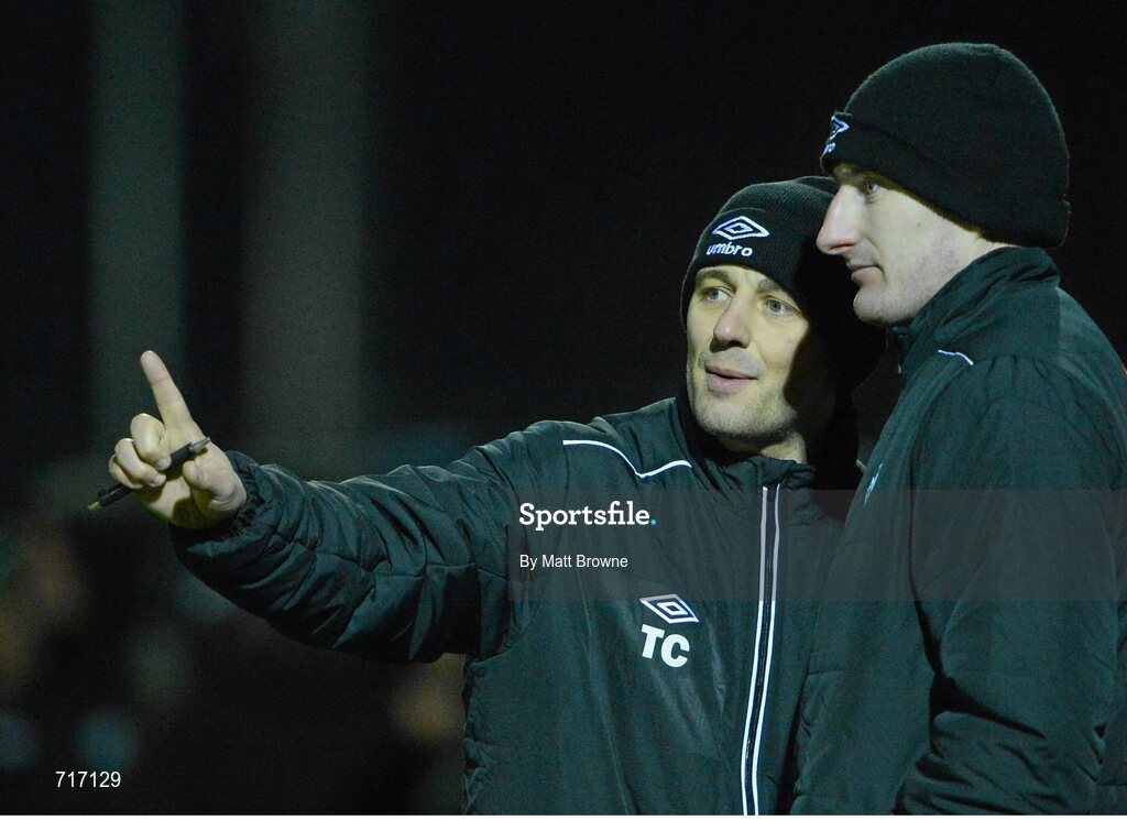1 February 2013; Trevor Croly, left, Shamrock Rovers manager, with Colin Hawkins, Shamrock Rovers assistant manager. Pre-Season Friendly, Wexford Youths v Shamrock Rovers, the Sportsgrounds, Carlow IT, Carlow. Picture credit: Matt Browne / SPORTSFILE