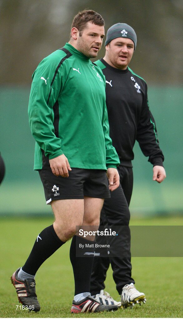 8 February 2013; Ireland's Mike Ross and Dave Kilcoyne during squad training ahead of their RBS Six Nations Rugby Championship match against England on Sunday. Ireland Rugby Squad Training, Carton House, Maynooth, Co. Kildare. Picture credit: Matt Browne / SPORTSFILE