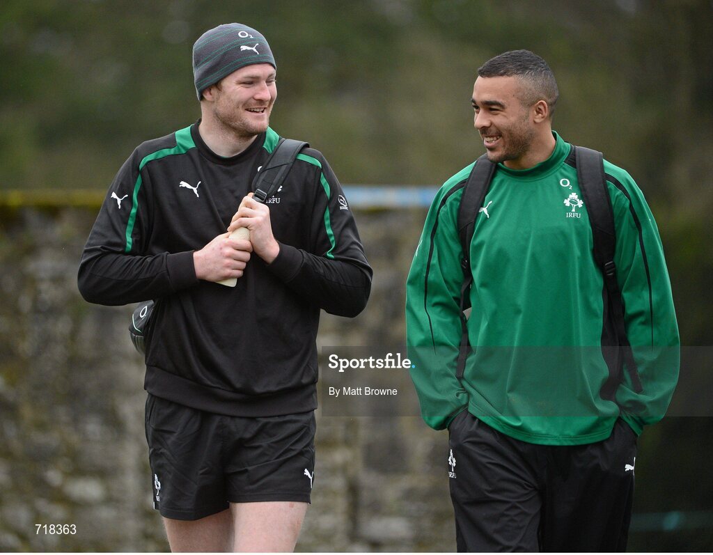 8 February 2013; Ireland's Donnacha Ryan and Simon Zebo arrive for squad training ahead of their RBS Six Nations Rugby Championship match against England on Sunday. Ireland Rugby Squad Training, Carton House, Maynooth, Co. Kildare. Picture credit: Matt Browne / SPORTSFILE