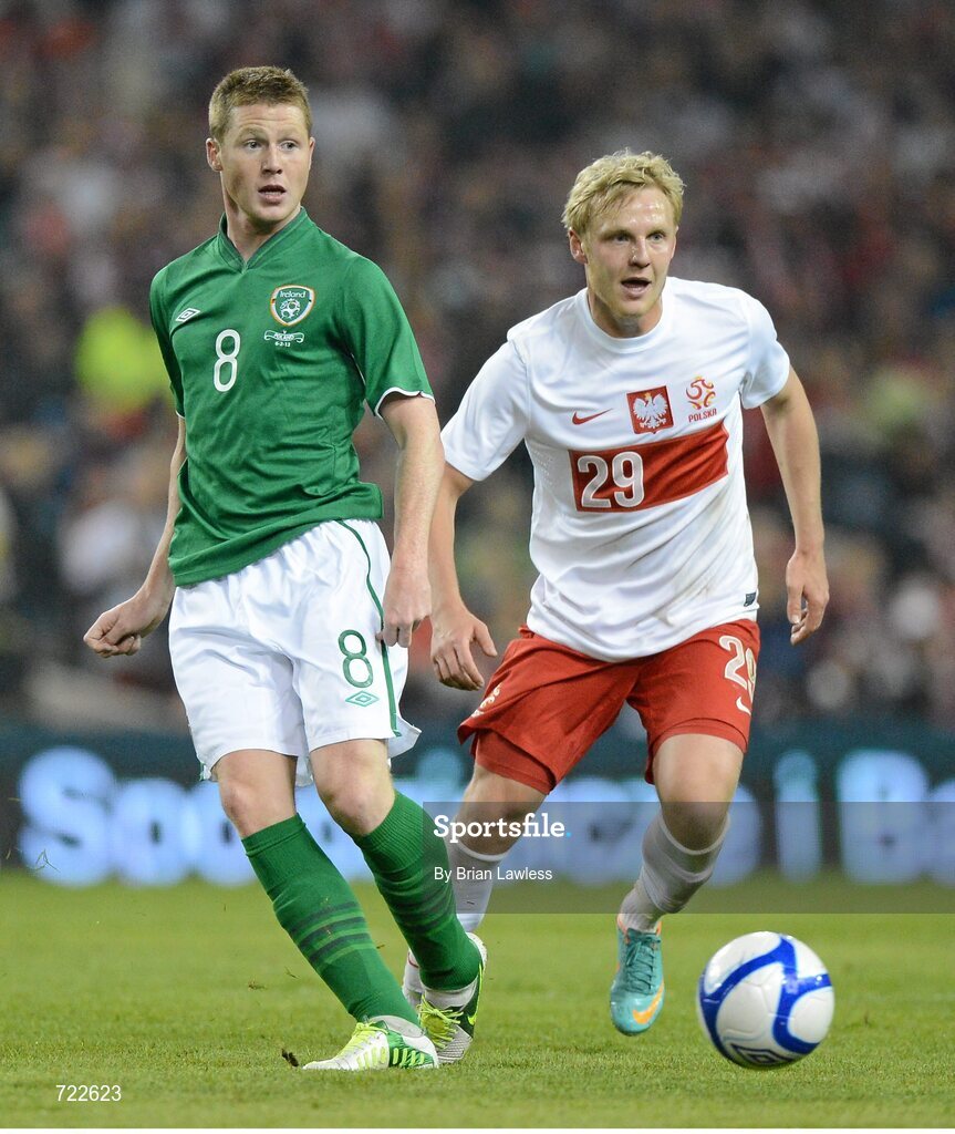 6 February 2013; James McCarthy, Republic of Ireland, in action against Daniel Lukasik, Poland. International Friendly, Republic of Ireland v Poland, Aviva Stadium, Lansdowne Road, Dublin. Picture credit: Brian Lawless / SPORTSFILE