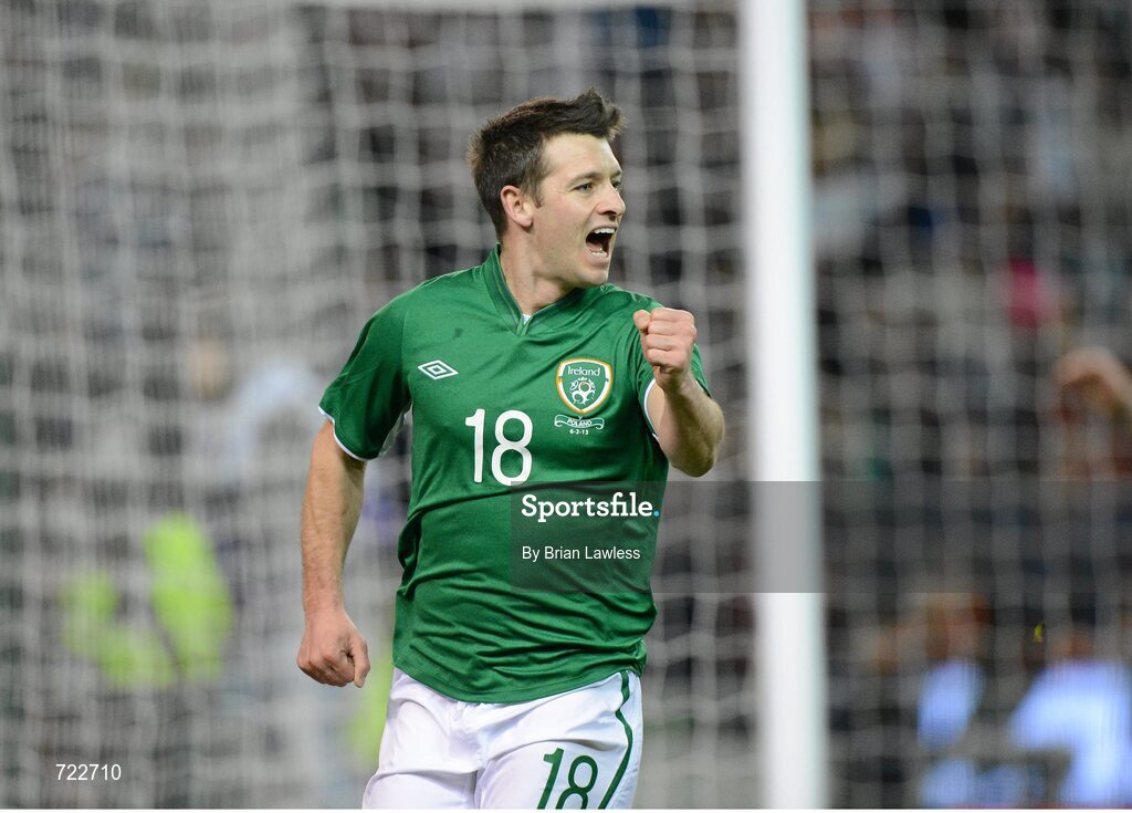 6 February 2013; Republic of Ireland's Wes Hoolahan celebrates after scoring his side's second goal. International Friendly, Republic of Ireland v Poland, Aviva Stadium, Lansdowne Road, Dublin. Picture credit: Brian Lawless / SPORTSFILE
