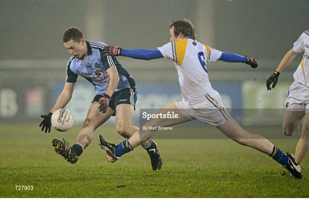 6 March 2013; Jack McCaffrey, Dublin, in action against Padraig McCormack, Longford. Cadbury Leinster GAA Football U21 Championship, Quarter-Final, Dublin v Longford, Parnell Park, Dublin. Picture credit: Matt Browne / SPORTSFILE