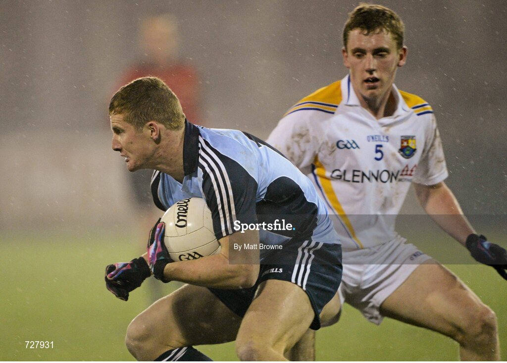6 March 2013; Ciaran Kilkenny, Dublin, in action against Diarmuid Cooney, Longford. Cadbury Leinster GAA Football U21 Championship, Quarter-Final, Dublin v Longford, Parnell Park, Dublin. Picture credit: Matt Browne / SPORTSFILE
