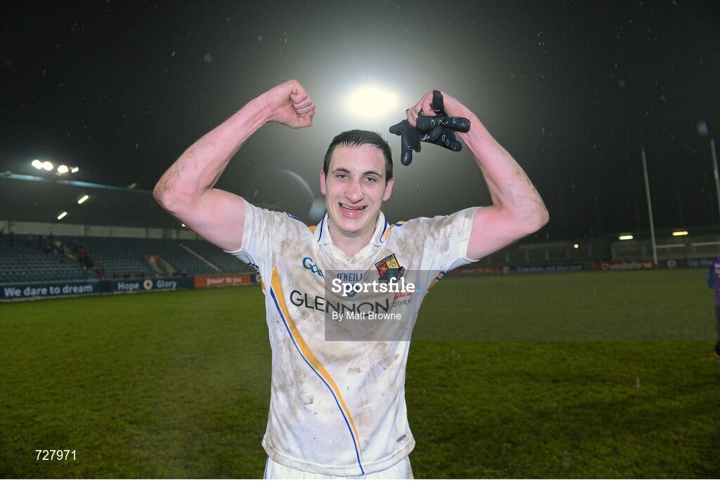 6 March 2013; Darren Gallagher, Longford, celebrates after the final whistle. Cadbury Leinster GAA Football U21 Championship, Quarter-Final, Dublin v Longford, Parnell Park, Dublin. Picture credit: Matt Browne / SPORTSFILE