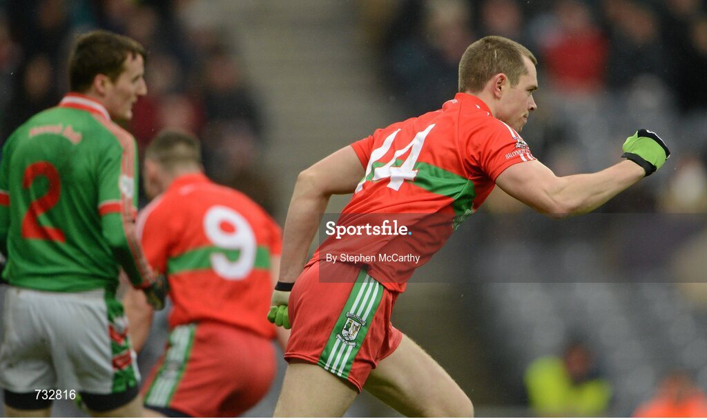 17 March 2013; Dean Rock, Ballymun Kickhams, celebrates after scoring his side's first goal. AIB GAA Football All-Ireland Senior Club Championship Final, Ballymun Kickhams, Dublin, v St Brigid's, Roscommon. Croke Park, Dublin. Picture credit: Stephen McCarthy / SPORTSFILE