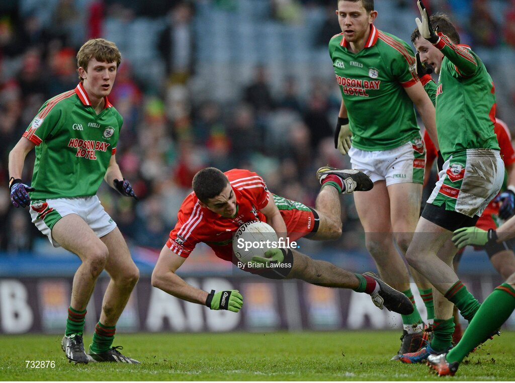 17 March 2013; James McCarthy, Ballymun Kickhams, in action against, from left, Ronan Stack, Karol Mannion and Gearoid Cunniffe, St Brigid's. AIB GAA Football All-Ireland Senior Club Championship Final, Ballymun Kickhams, Dublin v St Brigid's, Roscommon. Croke Park, Dublin. Picture credit: Brian Lawless / SPORTSFILE
