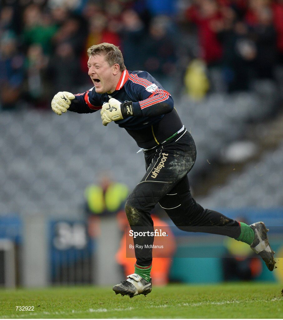 17 March 2013; The St Brigid's goalkeeper Shane Curran celebrates at the final whistle. AIB GAA Football All-Ireland Senior Club Championship Final, Ballymun Kickhams, Dublin, v St Brigid's, Roscommon. Croke Park, Dublin. Picture credit: Ray McManus / SPORTSFILE