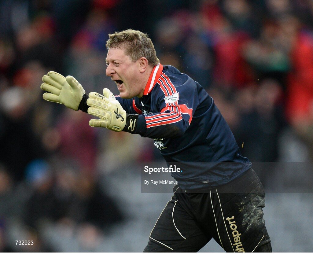 17 March 2013; The St Brigid's goalkeeper Shane Curran celebrates at the final whistle. AIB GAA Football All-Ireland Senior Club Championship Final, Ballymun Kickhams, Dublin, v St Brigid's, Roscommon. Croke Park, Dublin. Picture credit: Ray McManus / SPORTSFILE