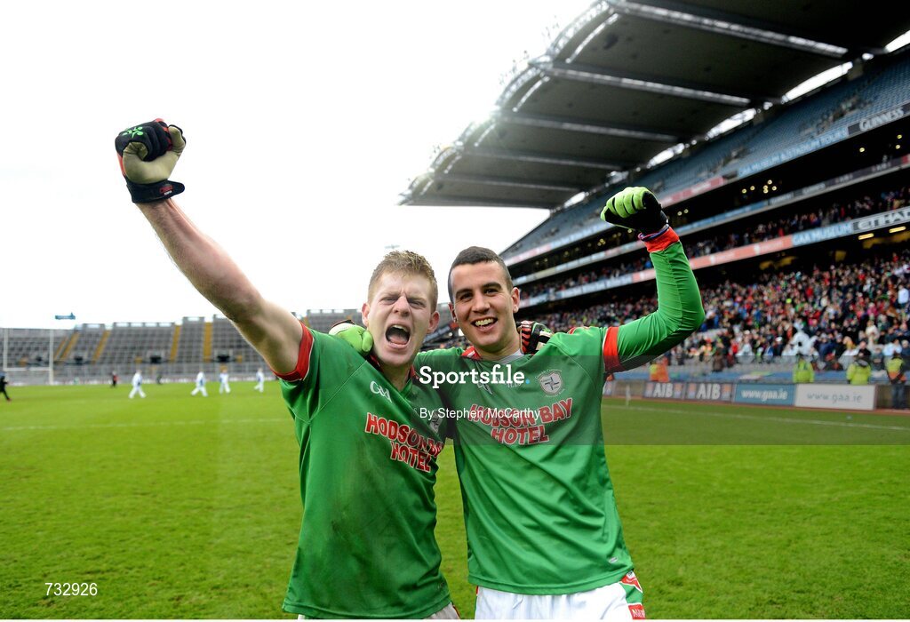 17 March 2013; Darren Dolan, left, and Eoin Sheehy, St Brigid's, following his side's victory. AIB GAA Football All-Ireland Senior Club Championship Final, Ballymun Kickhams, Dublin, v St Brigid's, Roscommon. Croke Park, Dublin. Picture credit: Stephen McCarthy / SPORTSFILE