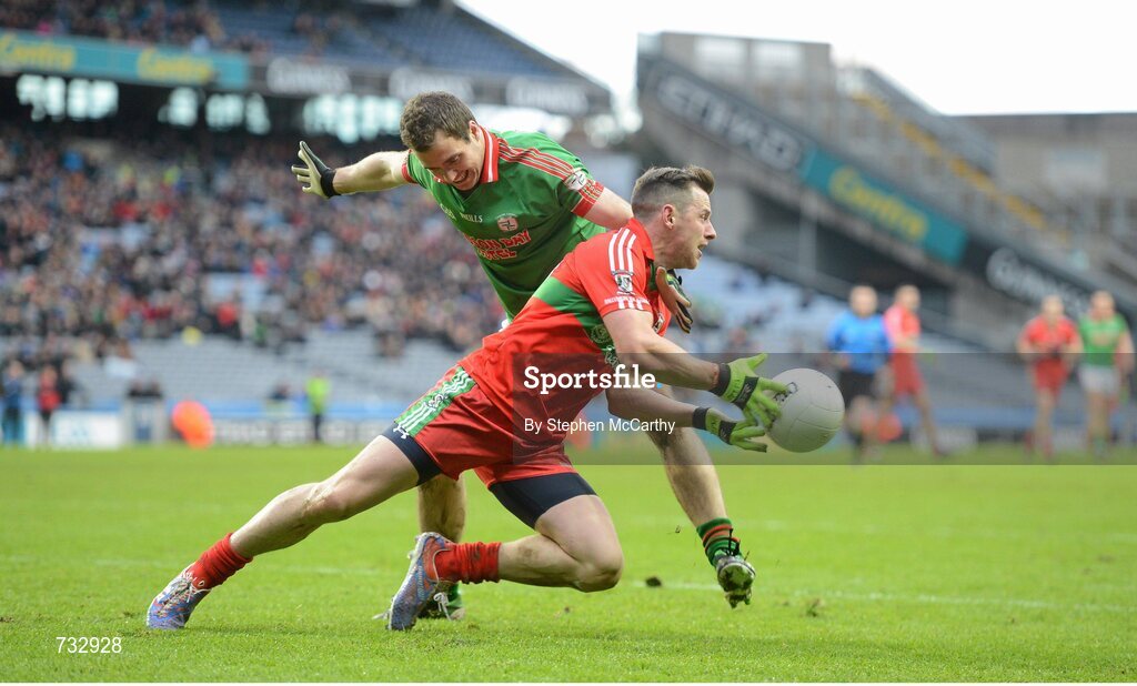 17 March 2013; Philly McMahon, Ballymun Kickhams, in action against Senan Kilbride, St Brigid's. AIB GAA Football All-Ireland Senior Club Championship Final, Ballymun Kickhams, Dublin, v St Brigid's, Roscommon. Croke Park, Dublin. Picture credit: Stephen McCarthy / SPORTSFILE