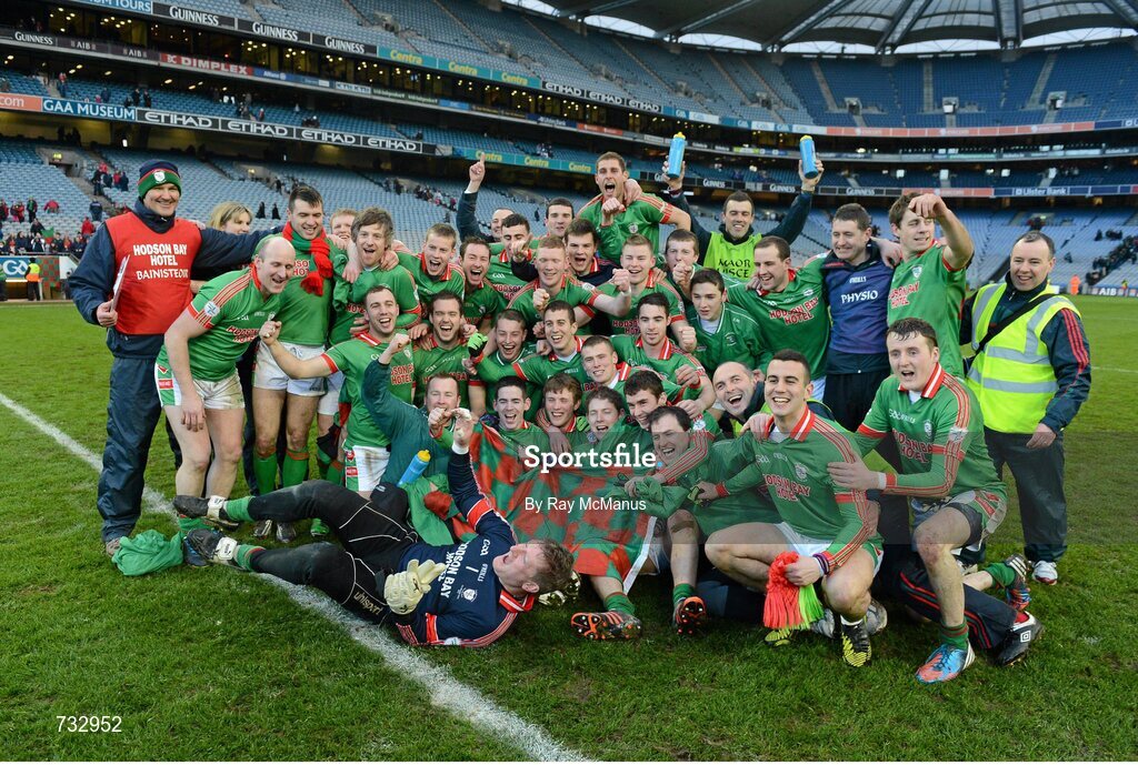17 March 2013; Goalkeeper Shane Curran and his St Brigid's team mates and officials celebrate after the game. AIB GAA Football All-Ireland Senior Club Championship Final, Ballymun Kickhams, Dublin, v St Brigid's, Roscommon. Croke Park, Dublin. Picture credit: Ray McManus / SPORTSFILE