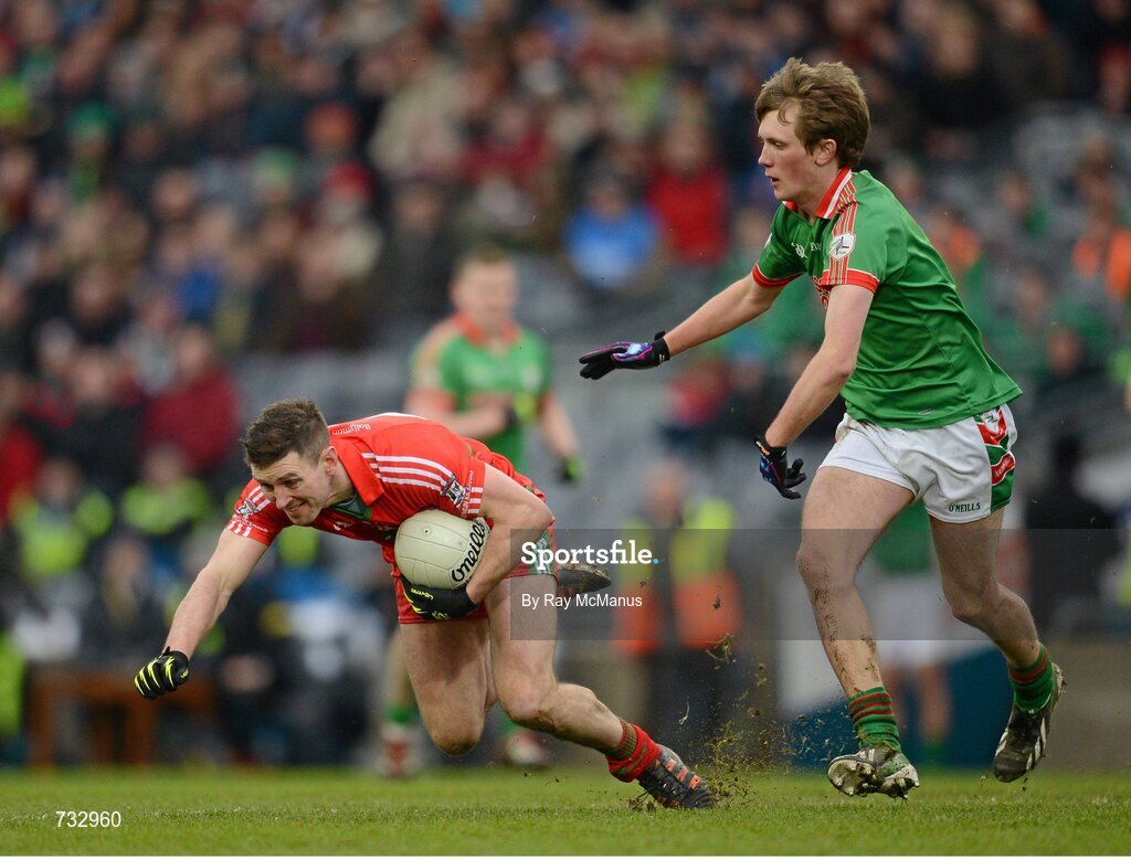 17 March 2013; Derek Byrne, Ballymun Kickhams, in action against Ronan Stack, St Brigid's. AIB GAA Football All-Ireland Senior Club Championship Final, Ballymun Kickhams, Dublin, v St Brigid's, Roscommon. Croke Park, Dublin. Picture credit: Ray McManus / SPORTSFILE