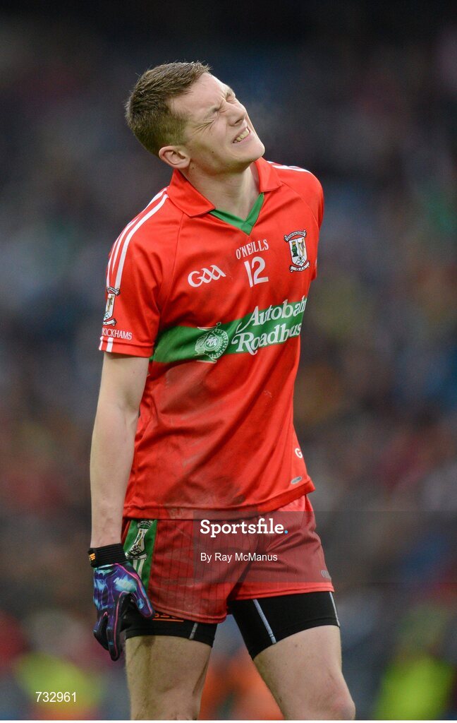 17 March 2013; Jason Whelan watches a late free go wide for Ballymun Kickhams. AIB GAA Football All-Ireland Senior Club Championship Final, Ballymun Kickhams, Dublin, v St Brigid's, Roscommon. Croke Park, Dublin. Picture credit: Ray McManus / SPORTSFILE