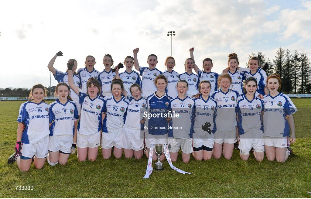 20 March 2013; Glenamaddy Community School players celebrate with the cup after victory over St Paul's High School. Tesco HomeGrown Post Primary School Junior A Final, Glenamaddy Community School, Co. Galway v St Paul's High School, Co. Armagh, Glenamaddy GAA Club, Galway. Picture credit: Diarmuid Greene / SPORTSFILE