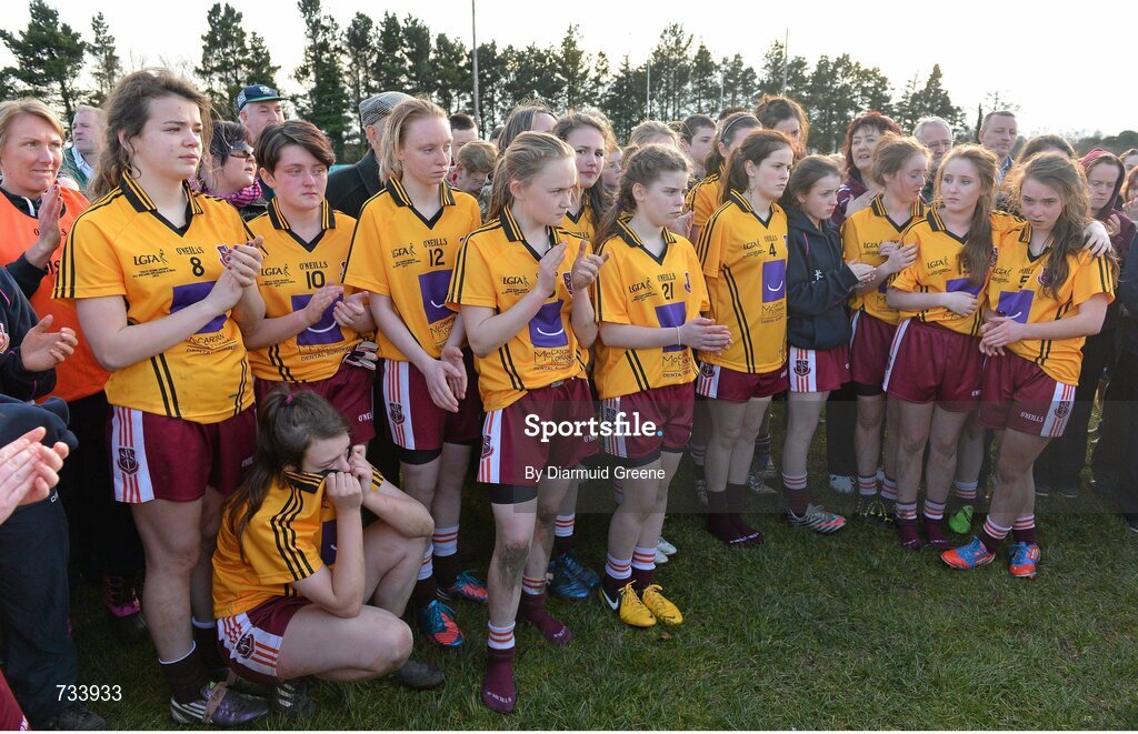 20 March 2013; St Paul's High School players after defeat to Glenamaddy Community School. Tesco HomeGrown Post Primary School Junior A Final, Glenamaddy Community School, Co. Galway v St Paul's High School, Co. Armagh, Glenamaddy GAA Club, Galway. Picture credit: Diarmuid Greene / SPORTSFILE