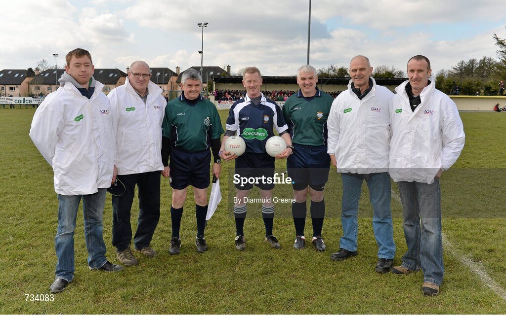 20 March 2013; Referee Paul Fahy with his match officials before the game. Tesco HomeGrown Post Primary School Junior A Final, Glenamaddy Community School, Co. Galway v St Paul's High School, Co. Armagh, Glenamaddy GAA Club, Galway. Picture credit: Diarmuid Greene / SPORTSFILE