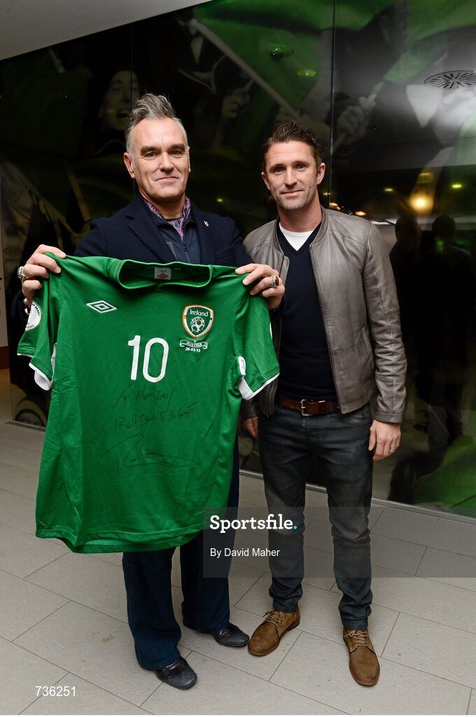 26 March 2013; Republic of Ireland's Robbie Keane meets Morrissey, former frontman of The Smiths, ahead of the game. Aviva Stadium, Lansdowne Road, Dublin. Picture credit: David Maher / SPORTSFILE