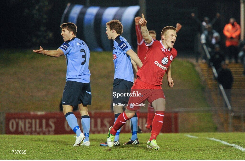 1 April 2013; David Cawley, Sligo Rovers, celebrates after scoring his side's second goal. Airtricity League Premier Division, UCD v Sligo Rovers, UCD Bowl, Belfield, Dublin. Picture credit: Stephen McCarthy / SPORTSFILE