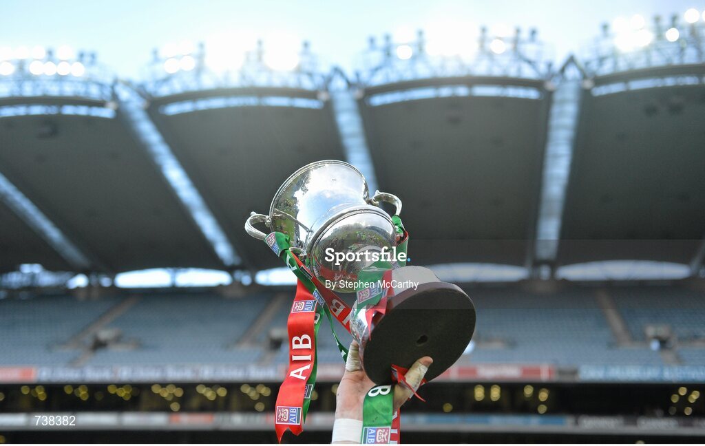 17 March 2013; St Brigid's players celebrate with the Andy Merrigan cup. AIB GAA Football All-Ireland Senior Club Championship Final, Ballymun Kickhams, Dublin, v St Brigid's, Roscommon. Croke Park, Dublin. Picture credit: Stephen McCarthy / SPORTSFILE