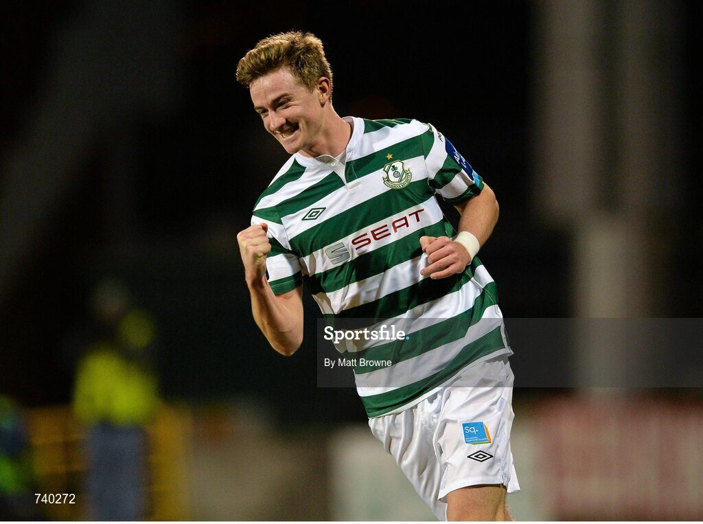 12 April 2013; Ronan Finn, Shamrock Rovers, celebrates after scoring his side's third goal. Airtricity League Premier Division, Shamrock Rovers v Bray Wanderers, Tallaght Stadium, Tallaght, Co. Dublin. Picture credit: Matt Browne / SPORTSFILE
