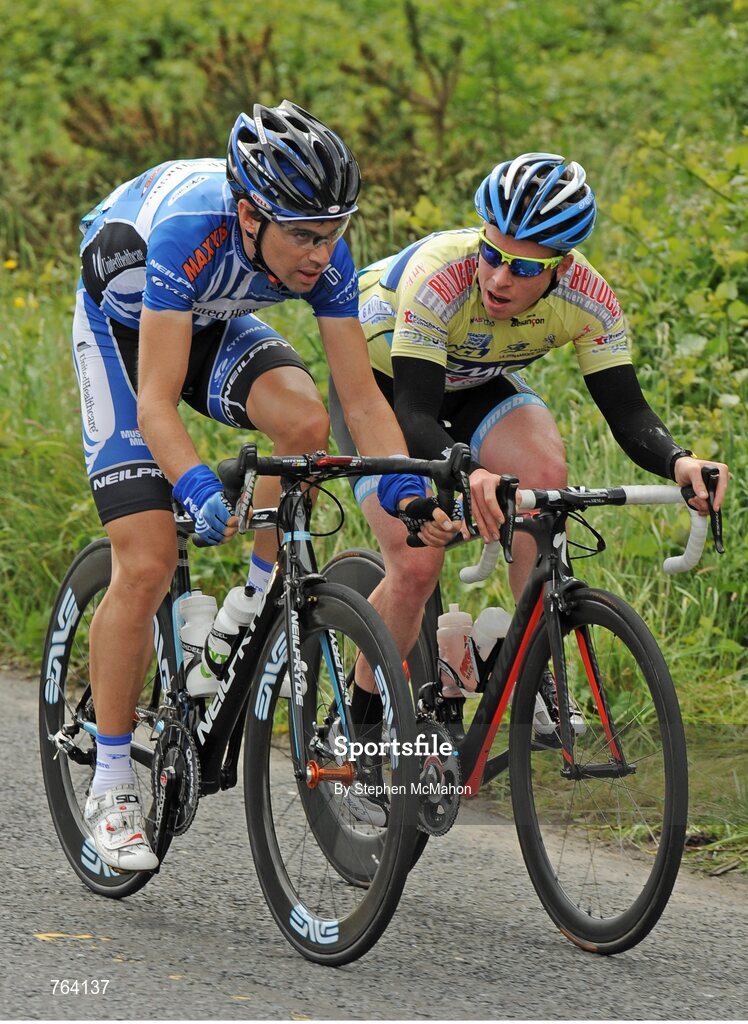 23 June 2013; Philip Deignan, United Healthcare, left, alongside Philip Lavery, Amicale Cycliste Bisontine, during the Elite Men's Road Race National Championships. Carlingford, Co. Louth. Picture credit: Stephen McMahon / SPORTSFILE