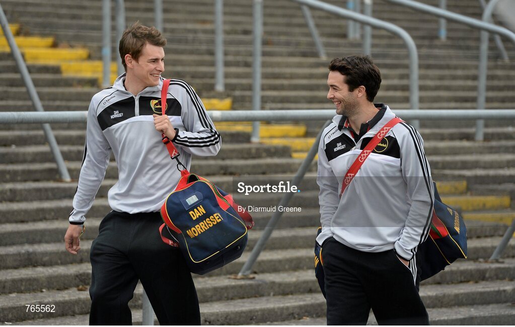 28 June 2013; Carlow players Sean Gannon, left, and Benny Kevanagh arrive for the game at 6.10pm. GAA Football All-Ireland Senior Championship, Round 1, Carlow v Laois, Dr. Cullen Park, Carlow. Picture credit: Diarmuid Greene / SPORTSFILE