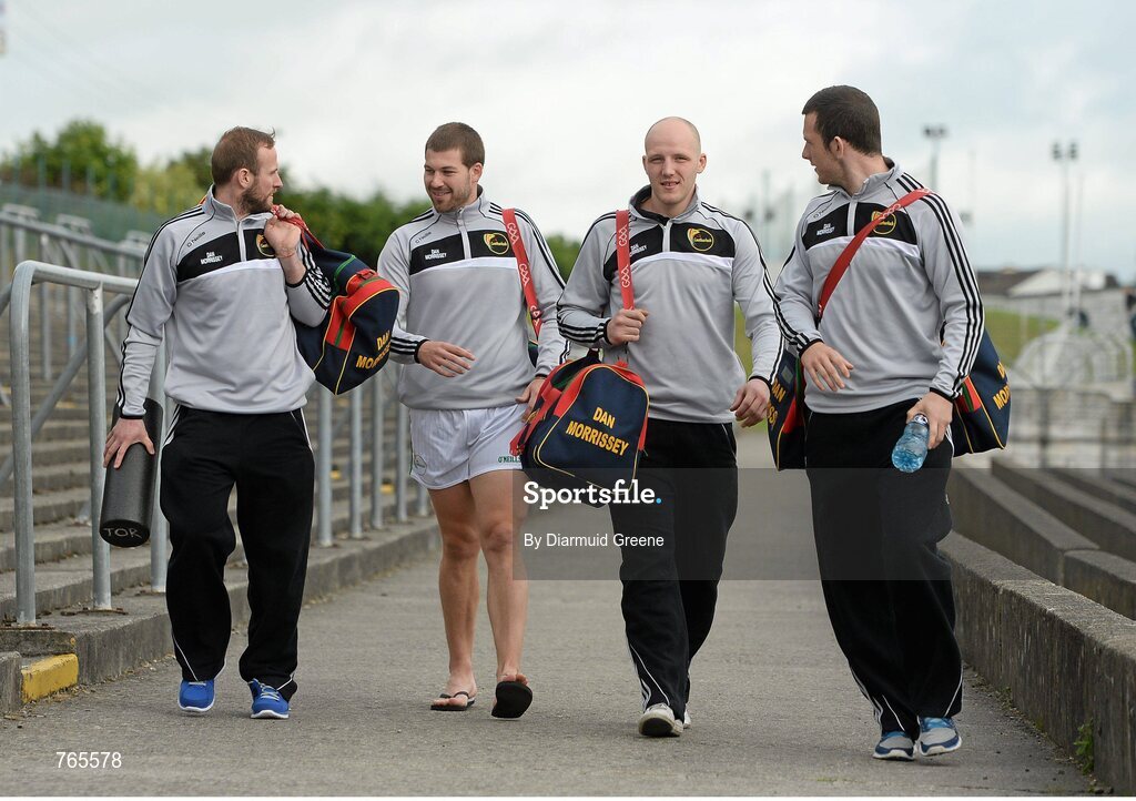 28 June 2013; Carlow players, from left to right, Trevor O'Reilly, Daniel St. Ledger, Shane Mernagh and Darragh Foley arrive for the game at 6pm. GAA Football All-Ireland Senior Championship, Round 1, Carlow v Laois, Dr. Cullen Park, Carlow. Picture credit: Diarmuid Greene / SPORTSFILE