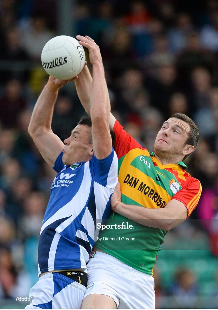 28 June 2013; John O'Loughlin, Laois, in action against Darragh Foley, Carlow. GAA Football All-Ireland Senior Championship, Round 1, Carlow v Laois, Dr. Cullen Park, Carlow. Picture credit: Diarmuid Greene / SPORTSFILE