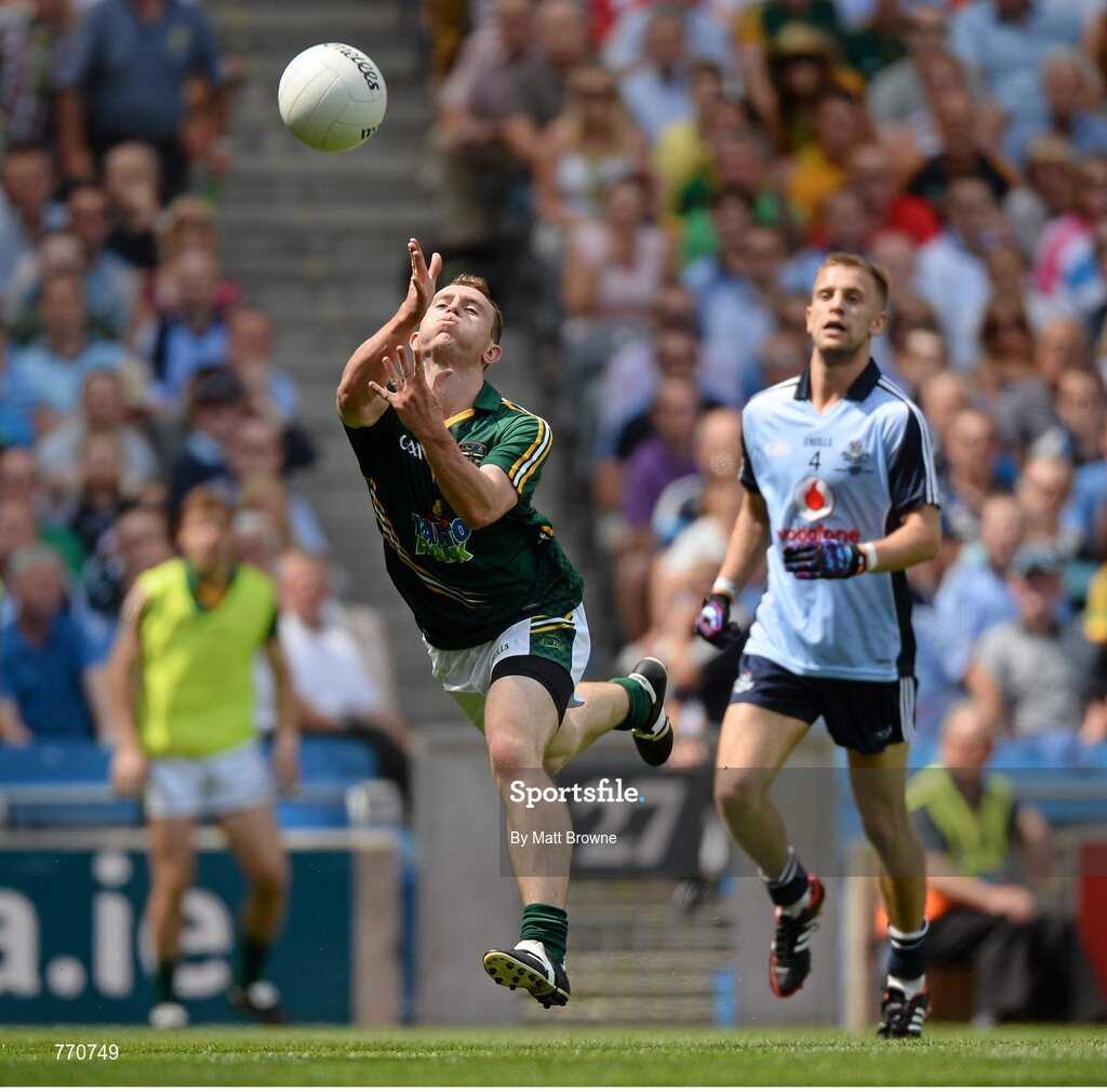 14 July 2013; Eamonn Wallace, Meath, scores a point as Dublin's John Cooper looks on. Leinster GAA Football Senior Championship Final, Meath v Dublin, Croke Park, Dublin. Picture credit: Matt Browne / SPORTSFILE