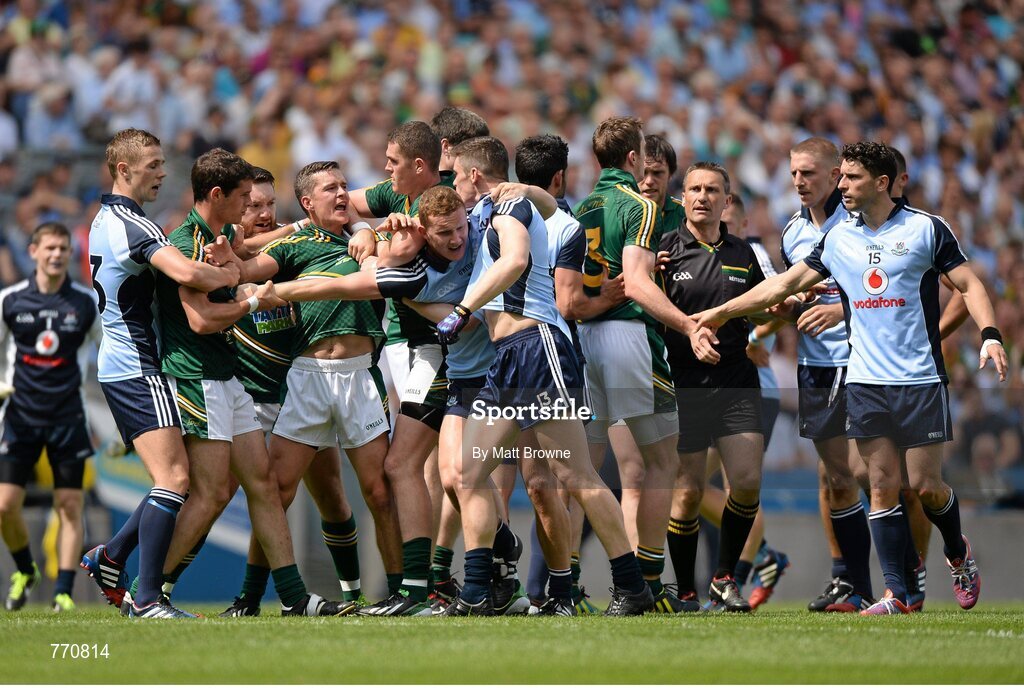 14 July 2013; Dublin and Meath players tussel during the second half. Leinster GAA Football Senior Championship Final, Meath v Dublin, Croke Park, Dublin. Picture credit: Matt Browne / SPORTSFILE